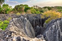 Prachtige opname van natuurpark Tsingy de Bemaraha in Madagaskar. De Tsingy bestaat uit een uitgestrekt landschap van scherpe geërodeerde rotsen en is een belangrijke toeristische trekpleister