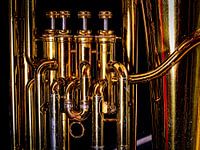 De Tuba is een koperen muziekinstrument met 4 ventielen zoals gebruikt in een Harmonie.