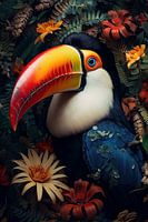 Laat je verbeelding de vrije loop terwijl je de majestueuze Tucan bewondert, die hoog tussen de boomtoppen door vliegt. De felle kleuren en gedetailleerde weergave van deze kunstafdruk geven je het gevoel dat je zelf door de dichte jungle wandelt.
