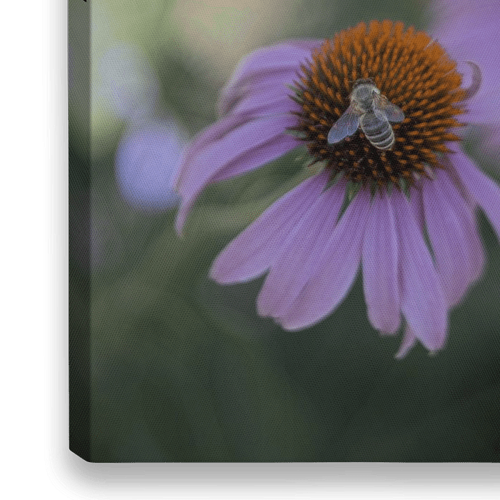 Bij verzamelt stuifmeel zittend op de bloem van een echinacea.