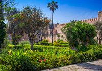 Tuin binnen de muren van de Bab El Kébir poort of de Udayas poort van de Kasbah van the Udayas, Rabat. Marokko.