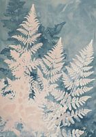 Tuin met Witte Varen - Op dit schilderij van een varen zie je een prachtige weergave van witte varenbladeren die zachtjes oplichten tegen een rustige, blauwe achtergrond, wat het schilderij een serene uitstraling geeft en perfect is voor in de tuin.