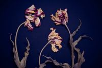 Tuin van gedroogde rembrandt tulpen. Compositie van 3 sierlijke gevlamde rembrandt tulpen