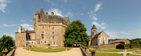 Tuinen en kerk van Château de Jumilhac in Dordogne, Frankrijk