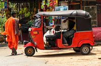 Tuktuk en monnik in Sri Lanka