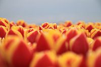 Mooie scherpte diepte op dit tulpenveld.Het lijken wel vlammen. Mooie kleuren met rood en geel