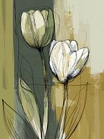Abstracte tulpen met lijntekening elementen in voornamelijk groene tinten