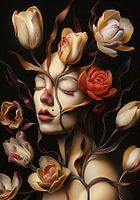Fantasie portret van een clown met tulpen.