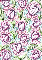 Kalligrafisch patroon van abstracte getekende bloemen. Ontluikende en bloeiende tulpen.