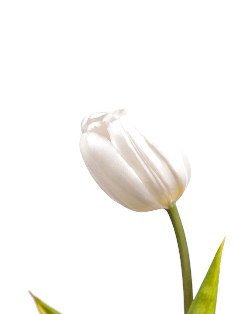 minimalistische foto van een witte tulp tegen een lichte achtergrond.