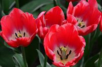 Tulpen in het roze met witte accenten van dichtbij gefotografeerd in het Keukenhof. Bijzonder aan deze foto zijn de felle en heldere kleuren, de verschillende tinten paars, de fijnere details van de bloemen zo als de bloemstengel, de bloembodem, kelkbladen, kroonbladen, meeldraden, helmdraad, vruchtbeginsel, de stamper, stijl en stempel en de abstracte stijl van de foto
