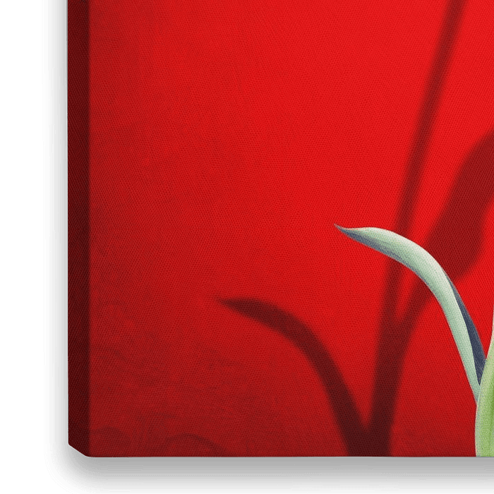 Digitaal vervaardigde afbeelding van een rode tulp, op een rode achtergrond.