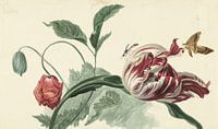 Aquarel van een tulp en een papaver, door Willem van Leen