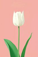 De pastel roze achtergrond omringt de bloem met een vredige en natuurlijke uitstraling. De tulp lijkt te stralen in haar eenvoud, met de roze accenten die haar een verfijnde en toch bescheiden charme geven.