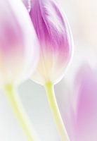 Een macro opname van een paar paarse tulpen. Voor deze foto heb ik de opname expres overbelicht om een high key effect en zachte sfeer te krijgen