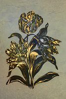 Tulp in warm Blauw, Goud en Brons. van Alie Ekkelenkamp