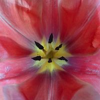 knal roze komt deze tulp als statement aan de muur te hangen. dit vierkant kan heel goed herhaald worden drie naast elkaar of in combinatie met bijde andere roze tulpen