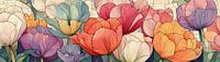 Tulpen Bloeien | Tulpen in Diverse Kleuren - Op dit bloemen schilderij zie je een kleurrijk geheel van tulpen met verschillende tinten roze, paars, geel en oranje, die samen een vrolijk en levendig gevoel geven.