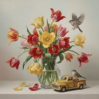 Koop dit vogel kunstwerk Tulpen Gaaien van Artclaud als print op canvas, aluminium dibond, (ingelijste) fotoprint, behang en ArtFrame. Voor jou op maat geprint in Fine-Art kwaliteit.