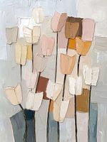Abstracte tulpen in een kubistische stijl met grove penseelstreken op ruw canvas in naturel tinten.