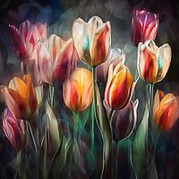Koop dit bloemen kunstwerk Tulpen, abstract van Carla van Zomeren op canvas, aluminium dibond, (ingelijste) fotoprint, behang en ArtFrame, op maat geprint in Fine-Art kwaliteit.