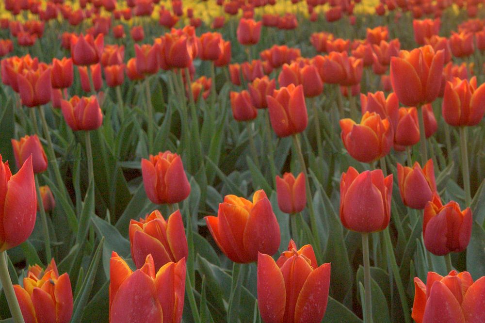 Tulpen bij zonsondergang geeft een schitterende combinatie van kleuren.