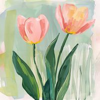 Tulpen groen hand getekend schilderij die een luxe toevoeging zal zijn aan elke ruimte. Met zijn unieke en stijlvolle uitstraling is het een ware eyecatcher. De schitterende kleuren en het bijzondere ontwerp maken dit kunstwerk 100% uniek en origineel. Het is de perfecte fotoprint om je interieur helemaal af te maken.