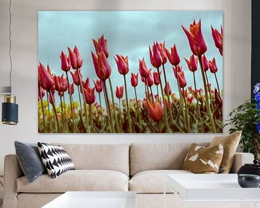 Een tulpenveld in Holland. Een kleurrijke bloembollenroute in Nederland is te vinden in de Kop van Noord-Holland.