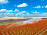 Koop dit landschapskunstwerk Tulpen in een veld besproeid door een waterkanon van Sjoerd van der Wal Fotografie op canvas, aluminium dibond, (ingelijste) fotoprint, behang en ArtFrame, op maat geprint in Fine-Art kwaliteit.