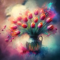 Koop dit bloemen kunstwerk Tulpen kleurenexplosie schilderij van Jessica Berendsen als print op canvas, aluminium dibond, (ingelijste) fotoprint, behang en ArtFrame. Voor jou op maat geprint in Fine-Art kwaliteit.