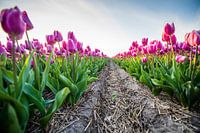 Tulpen netjes op een rij in de bollenvelden van Alkmaar (Nederland).