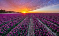 Tijdens zonsondergang, perfecte wolkenlucht en de prachtige paarse kleur van de tulpen! Schoonheid der natuur!