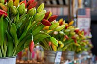 De bloemenmarkt ligt aan de Singel Gracht - tussen het Koningsplein en het Muntplein. Het is een "drijvende markt" die is opgezet op zogenaamde pontons. Hier vind je veel kraampjes die verschillende tulpenbollen en souvenirs van houtsnijwerk verkopen. Hier en daar vind je ook een tulpenkraam die bloeiende tulpen verkoopt.