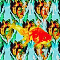 Deze kleurrijke popart-grafiek legt een intrigerende vergelijking tussen de 17e-eeuwse tulpenmanie en de moderne goudkoorts rondom bitcoin, NFT’s en andere cryptovaluta. Als achtergrond is een bewerkte, oude prent van tulpen uit de Rijksmuseum-collectie gebruikt, waarin subtiel het bitcoin-logo is verwerkt. Op de voorgrond prijkt een goudvis, samen met de contouren van verschillende personen, die samen een levendig en fris digitaal popart-schilderij vormen.