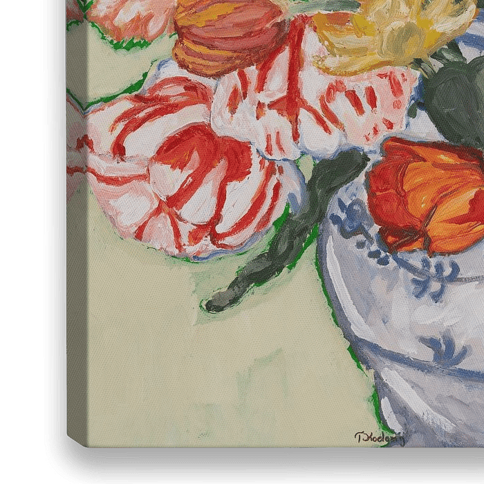 Het schilderij "Tulpenvaas" is van de Nederlandse ontwerper en kunstschilder Tanja Koelemij.