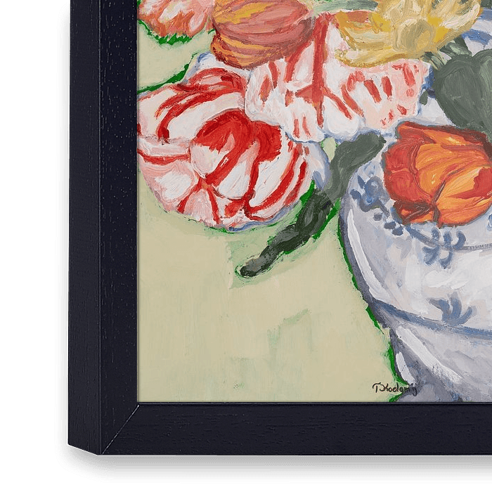 Het schilderij "Tulpenvaas" is van de Nederlandse ontwerper en kunstschilder Tanja Koelemij.