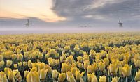 Tulpenveld Schermerhorn met molens en grondmist