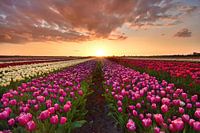 Tulpenveld bij zonsondergang in de Middenbeemster