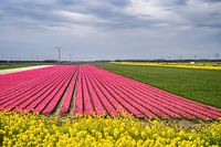 Op weg van een wandeling in de Oostvaardersplassen naar huis zag ik dit roze tulpenveld. Met die windmolens erachter.. Hollandser krijg je het niet! Ik heb snel de auto in de berm geparkeerd en heb deze foto gemaakt. Vanaf half april zijn ze er weer! Nog even wachten.