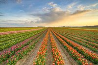 Zonsondergang in een tulpenveld tussen Korschenbroich en Grevenbroich in het Rijndistrict Neuss.
