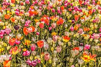 Een veld vol met gekleurde tulpen. Deze tulpen stonden op een heuvel bij de ingang van de Keukenhof. Een zeer mooi aangezicht, zowel daar als op de foto!