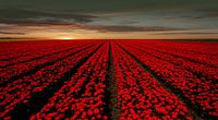 Tulpenveld bij ondergaande zon. Kleuren en lucht voorzien van meer diepte.