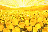 Typisch Nederland. De Hollandse Tulpenvelden. Grote velden in alle kleuren van de regenboog. Meestal geel of rood. Zuid Holland in de buurt van Lisse het meest bekend maar ook in Noord Holland vind je veel velden met tulpen en de molens.