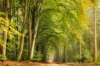 Dit mooie pad in een bos op de Veluwe heeft beukenbomen aan de ene kant en sparren aan de andere kant, wat het een zowel asymmetrisch als symmetrische aanblik geeft. De bomen aan de linkerkant bogen over het pad heen, terwijl de naaldbomen aan de rechterkant rechtop staan. De herfst is in aantocht en heeft de eerste bladeren al wat…