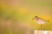 Tureluur op een paal in het gouden uurtje voor zonsondergang