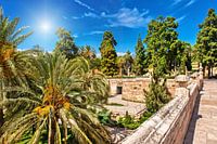 Bomen en palmbomen in het Turia Park in Valencia Spanje