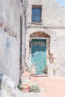 Een van de vele turquoise deuren van Matera die je een zomers gevoel geven.