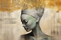 Portret van een vrouw die langzaam aan verandert in een standbeeld.