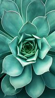 De afbeelding toont een vetplant met overlappende bladeren die uitwaaieren vanuit een centraal punt, waardoor een hypnotiserende, spiraalvormige structuur ontstaat. De bladeren zijn doordrenkt met diverse tinten groen en hebben een wasachtige afwerking die een levendige, bijna aquatische glans geeft. De randen van de bladeren zijn subtiel opgelicht, wat een gevoel van diepte en dimensie creëert.