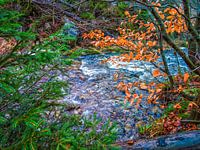 Tussen De Bomen Stromend Rivier van Bayehon. Deze stroming is Bayehon waterval in Malmedy Belgie.